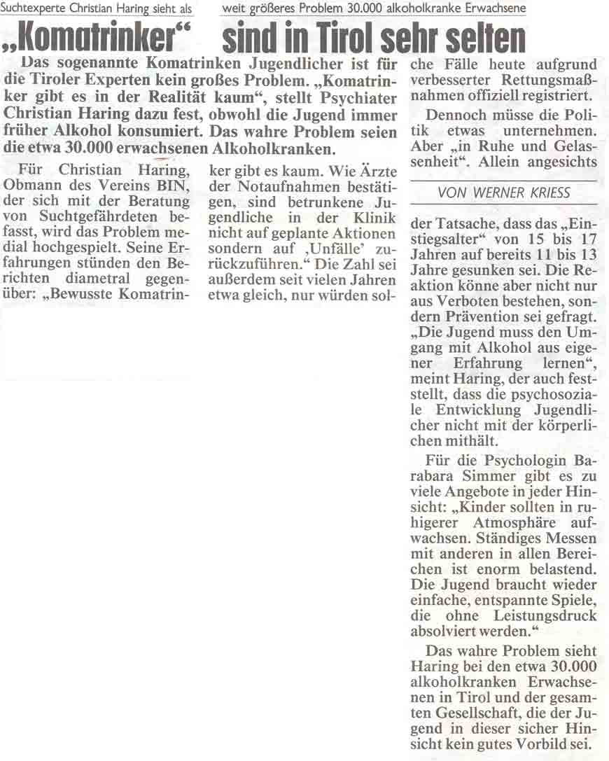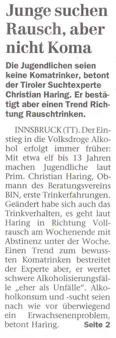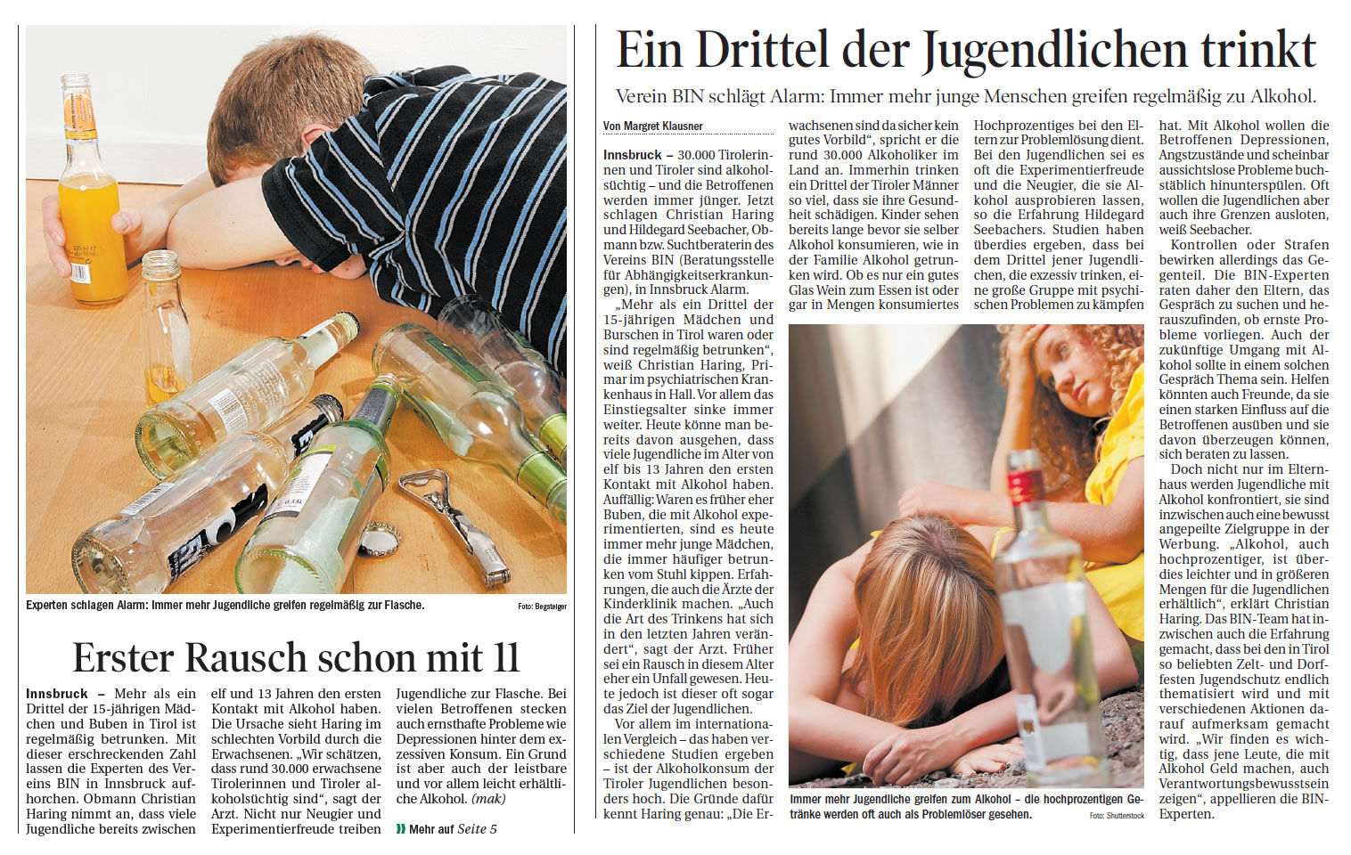 | Alkoholkonsum im Bezirk Landeck - vom Genuss zur Sucht |
