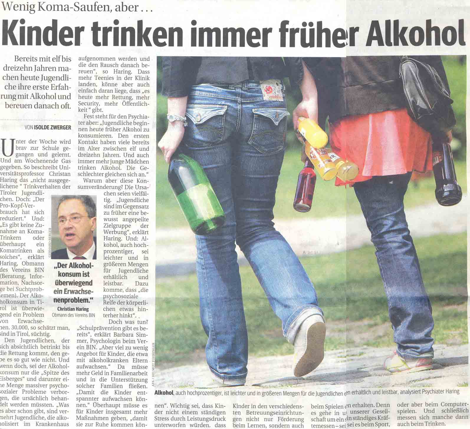 | Tiroler Jugendliche konsumieren häufiger und mehr Alkohol als Jugendliche aus anderen Ländern |