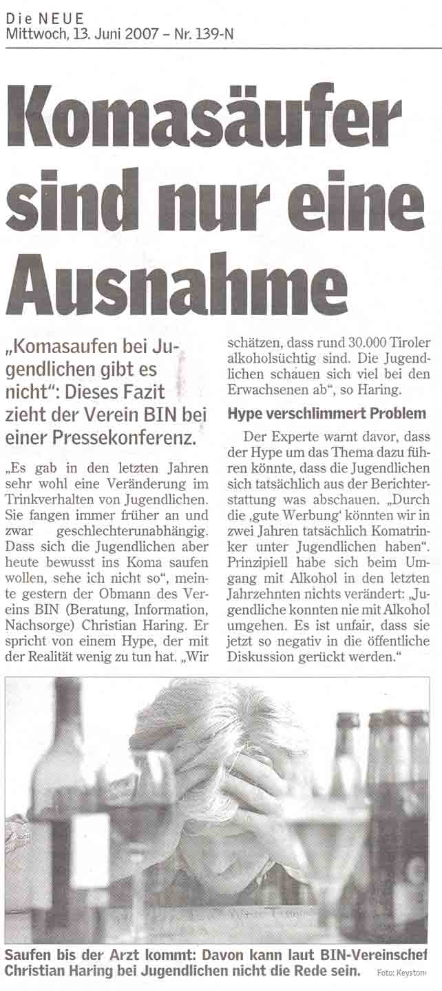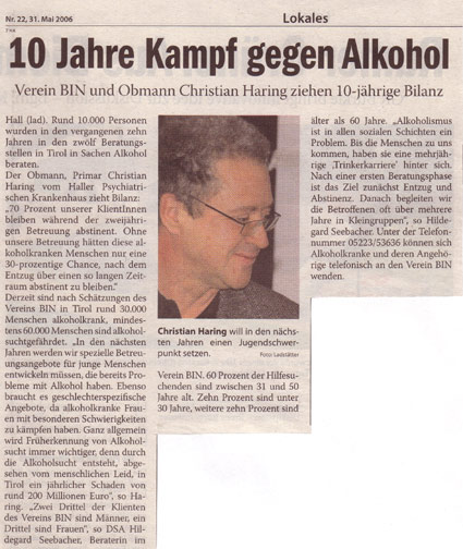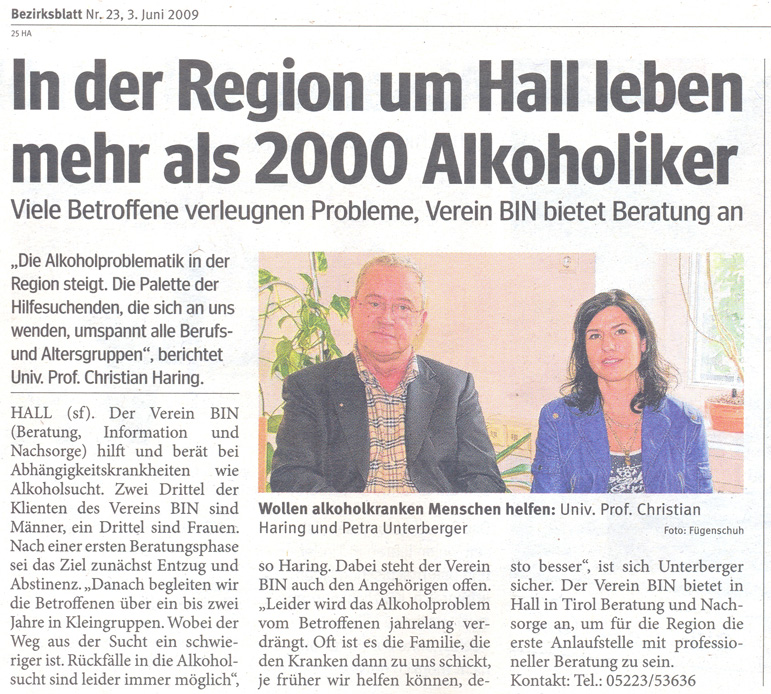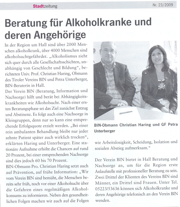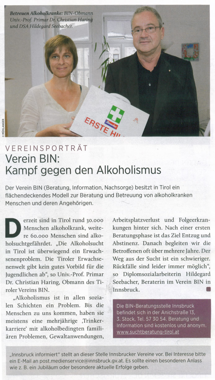 | Vereinsporträt - Verein BIN: Kampf gegen den Alkoholismus |