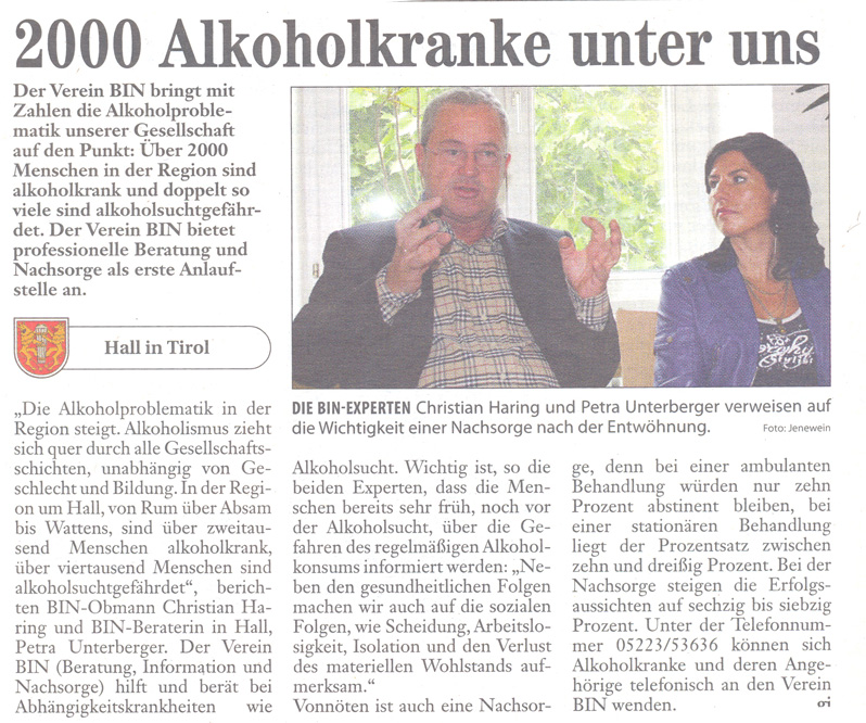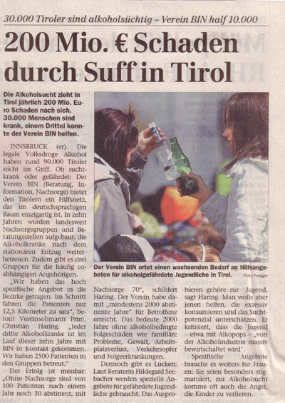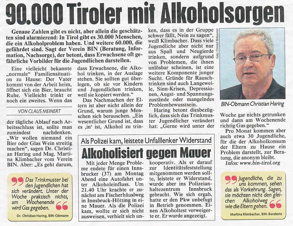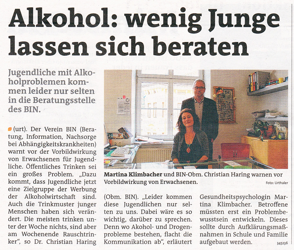 | Verein BIN in Landeck: Es gibt Hilfe im Teufelskreis der Alkoholsucht |