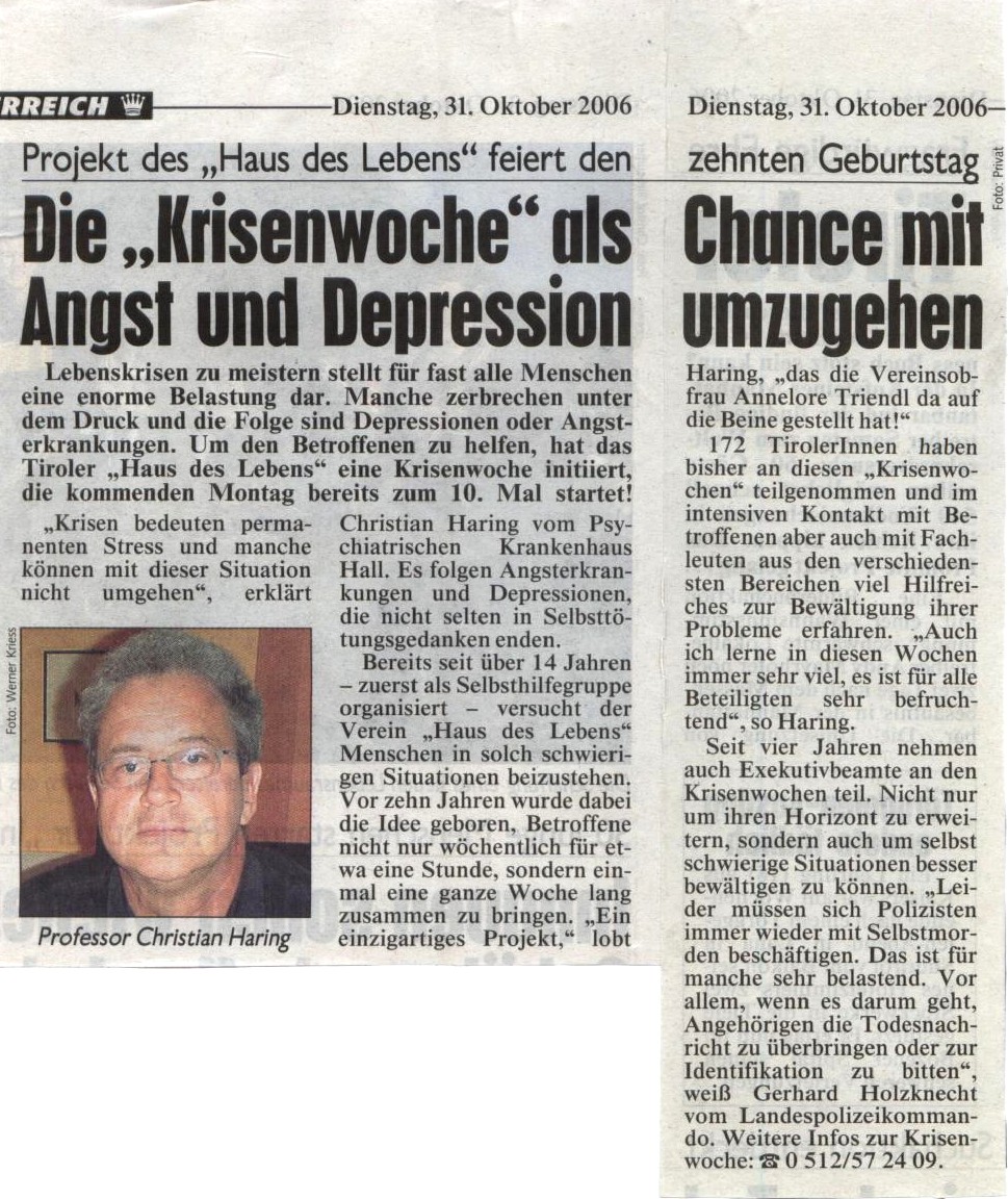 | Die Krisenwoche als Chanze mit Angst und Depressionen umzugehen. |