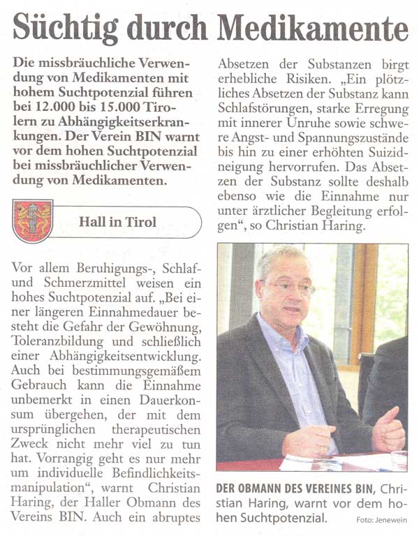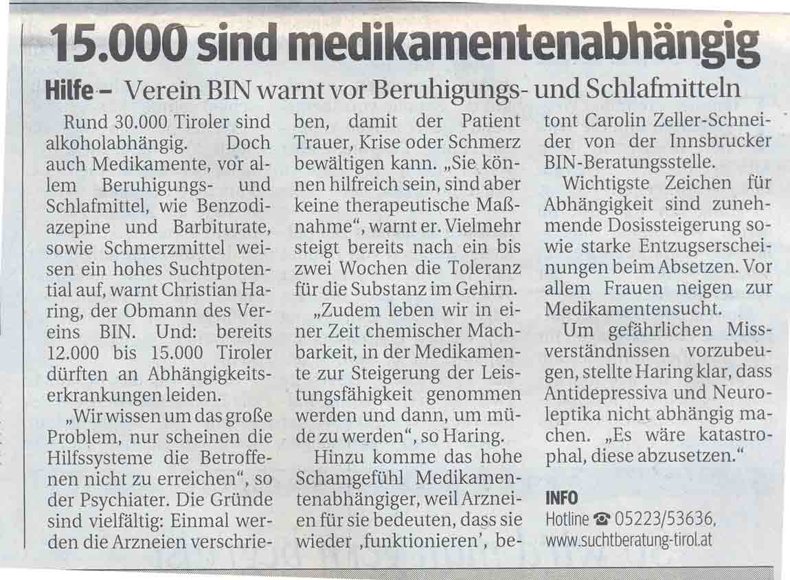 | Medikamentensucht lt. Tiroler Suchtberatung meist weiblich |