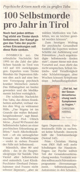 | Tirol startet Suizidpräventionsprojekt an Schulen |