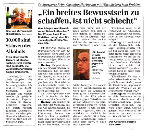 | Suchtexperte Prim. Dr. Haring hat mit Warn-klebern kein Problem. |